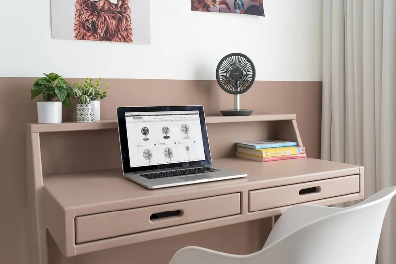 Deze tafelventilator van Eurom werkt op batterijen. Hierdoor heb je alle vrijheid om de ventilator daar te plaatsen waar jij het wat koeler wilt hebben. Je bent namelijk niet meer afhankelijk van een stopcontact in de buurt. Een ideale ventilator voor op de camping dus! Zo houd je โs middags de voortent lekker koel en โs nachts de slaapkamer. Draadloos gaat de accu tussen de 4 en 15 uur mee, afhankelijk van op welke stand je de ventilator hebt staan. Is de accu van de ventilator leeg? Dan laad je deze eenvoudig weer op met de meegeleverde USB oplaadkabel.